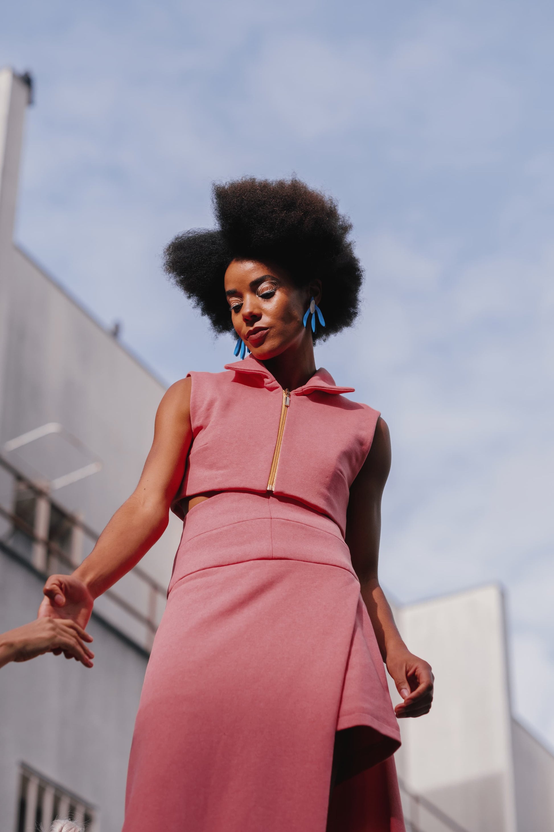 A Saia Calção que cria uma simbiose orgânica com o Colete Curto Slowly Fast.